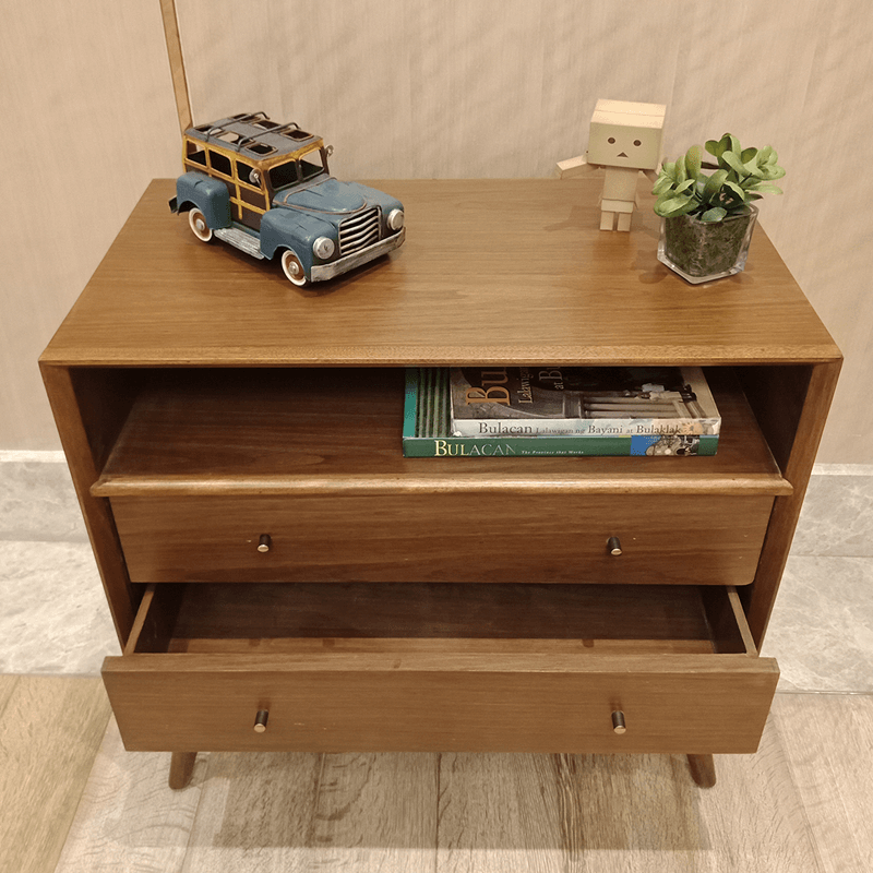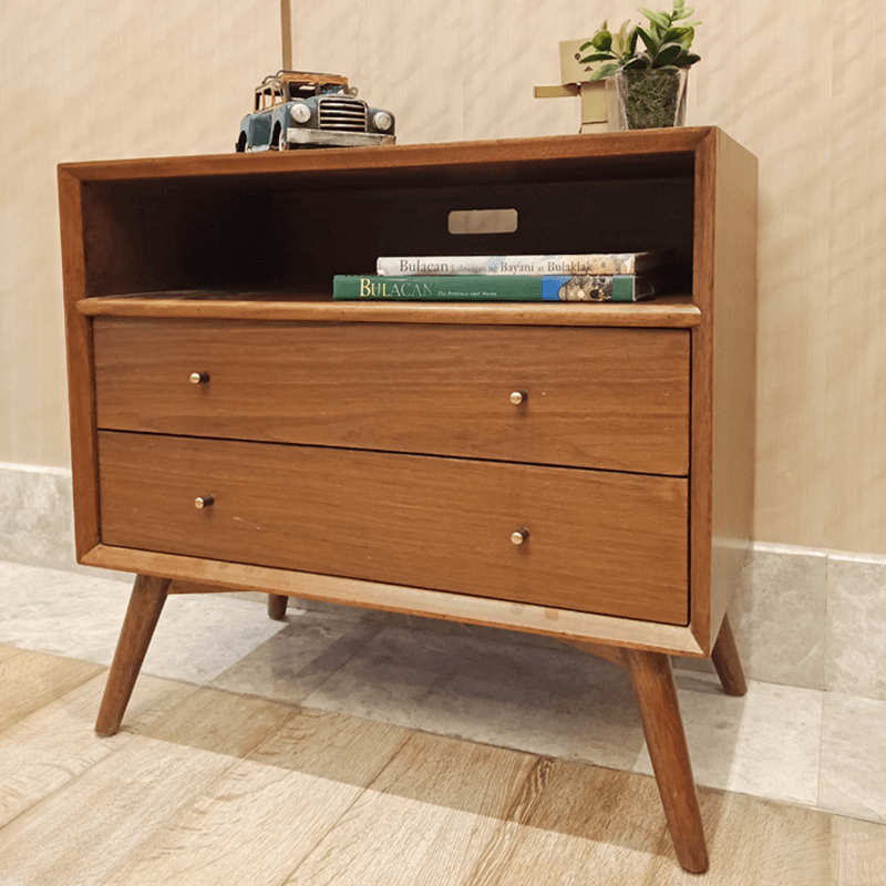 The Pyxis nightstand is the perfect furniture addition that will harmonize the overall look of your bedroom. Its top shelf and 2-drawer feature provides the right amount of utility and style.