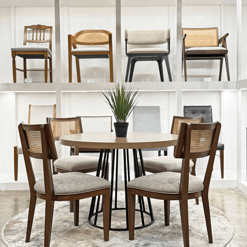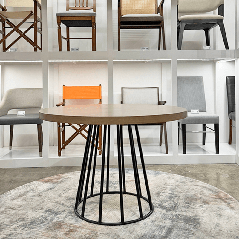 This dining table is a perfect fit for your home and easily mixes in with modern, mid-century or transitional style themes. Artfully crafted in high-grade metal base and premium wood top, our Roco Round dining table features a premium wood top, suitable for a for smaller spaces that need to be compact without sacrificing on style.